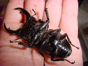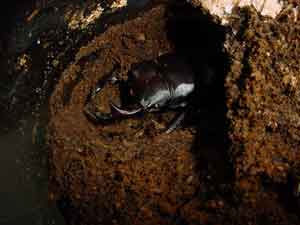 中断其の二 こちらも冬眠から醒めた山梨産の♂。今178号室にいる山梨産幼虫のお父さんです。今年は「こんなで大丈夫?」って言うくらい乾燥気味の環境での冬眠のため、ダニはほとんど見あたりません。去年はマットが乾かないくらいに霧吹きしてたんですが、今年は様子を見ながら7〜10日に一回くらいのペースで霧吹きしていました。 ※15年3月1日 撮影 |