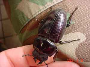 ところが 立派な♀が出てきました。45mmです。親が♂70mm×♀40mmですから、親より立派と言っていいでしょう。羽はまだ少し赤茶色いのでこれから黒くなるのかな? ※15年5月18日 撮影 |
