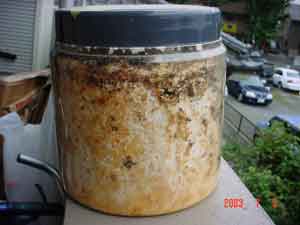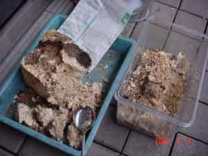 きっとダメだろう と思い上の写真のビン三個掘ってみました。蛹になっている可能性もあるので慎重に掘りました。 ※15年5月18日 撮影 |
