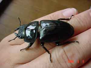 別の角度 上の♀を別の角度でとらえました。オオクワの♀はこのツヤが何ともいえませんね。すばらしい!! ※16年8月9日 撮影 |