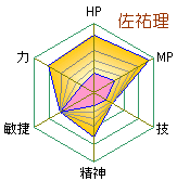 レーダーチャートは外側から「Lv50-40-30-20-10」で表示、中央のピンクが初期レベル