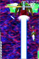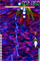 出現時のみ、赤大弾を打ちながら下方向に突撃してくる。初めは画面下中央で打ちまくり、敵が真ん中程度に来たときに右側に避ければ良い。 青弾をレーザーのように吐く。画面下側にも隙間があるが、それよりもボスに重なって打つと、全ての弾を安定して当てられる。敵本体との当たり判定が無いのを有効利用する。 |