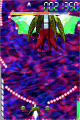 ボスが下から上に移動する際、多くの赤弾を発射する。ボスより自機1つ分程度横に位置しておけば食らわない。ボスが上がり終えたことを確認した後、自機を下部に移動する。 3〜4セット程度繰り返すと、10%程度のダメージを与え、第3段階に移行。ダメージはまず食らうことはない。この時に、ラスボス最終形態に備え、エネルギーゲージを100%残しておくこと。 |