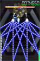 3列の青弾を、自機に向けて打ってくる。大きく角速度をつけて弾の切れ目を作り、そこを抜けると良い。また、このボスを倒した後に5ポイント程度の体力が残っていれば十分回復できるので、無理して逃げずに速攻で倒しても良い。自機に近づいて打たれると、結構避けるのが大変。 |