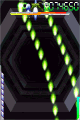 ゲーム初の‘ロックオン’登場。自機がいた場所が、一定時間後爆発する。緑弾も自機の方に迫って来、列上に見える。普段はあまり動かずに弾をひきつけ、列と列の隙間が見えたときにそこを急いで動き突破すれば、両方の弾を避けられる。 |