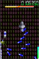 青レーザ大量散布。画面下端で微妙に横方向に移動し続ければ簡単に避けきれる。移動の開始点を画面端にしておくと、避けやすくなる。避けている最中に壁に追いつめられると避けようがない。 |