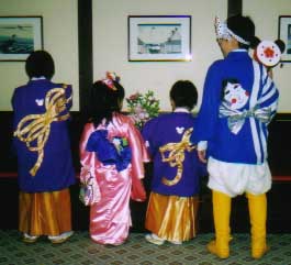 びっくり!ちゃんと着物にヒョットコの絵がついている!頭にハチマキ。ヒョットコのお面。最高!!