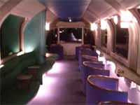 オール二階建ての寝台特急カシオペアは、JR東日本が誇る?走る豪華ホテル列車とのこと。お値段も結構する。夢は展望室タイプですが…まぁ、手ごろなツインタイプです。って言っても、電車なのに、トイレ・洗面所も室内にあります。テレビもあり、ウェルカムドリンクも配ってくれます。ゴージャス気分。 先頭の展望室もライトがキレイです。 |