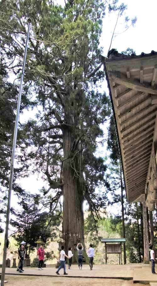・ 県指定の天然記念物 樹齢は800年、 胸高周囲は約9m、 樹高は約43m。 数回の 落雷があり 一部は 枯れていたり 朽ちています