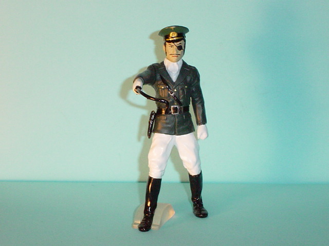 | コメント | ショッカー日本支部の初代大幹部のゾル 大佐がついにガシャポンで登場した。鞭 を前に突き出すお馴染みのポーズを再現 した。 |