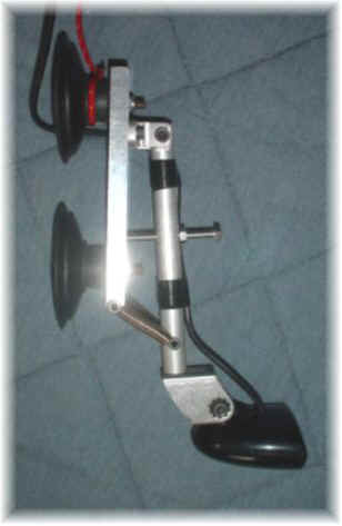吸盤を2個に変更、アルミ板にヒンジを付け、スクリューボルトでアームの角度が変えられます。(ボートのトランサムの角度に合わせる)