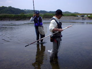| 6月1日 小山早瀬会@鮎中毒〜 私は中央漁協所属の為、”武茂川大森囮屋”へ新年のご挨拶。 そして年券及び囮を購入。 ドン玉&暴れナイトは北部漁協の為、黒羽にて年券購入。 そしてAM4:00烏山に集合! 会長 : ドン玉。 広報部長 : 暴れナイト。 パシリ : 私、ka2。 約9ヶ月ぶりの鮎釣りです。ああ〜久しぶり 「明けましておめでとうございます。」 とりあえず、昨年の実績のある烏山、荒川合流上へ!! (でも空いてた。) |