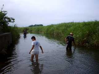 | 溜まりで雑魚獲り。暴れナイト次男&アチャ・ヒロ |