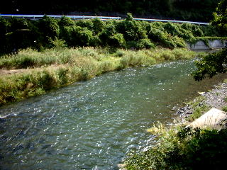 10月3日 昨日はそんなに飲んでいた訳では無いが・・・ うそ。 ゆっくりでイイっすね!どうせ朝行ったってダメなんですから!!バージョン。 下田駅前のマックでモーニングセットをやっつけ、出動。 昨日お話をうかがった「夢釣庵」に囮・日券を購入する為、山道を登る。 うわっつ、囮が小さい。 天然囮だが。 なるほどこういうヤツが相手か!! この前まで、たいして掛けていないが、20cmは平均するサイズを触って来た。 うーん。このサイズか「手ごわいぞ!?」「手ごたえが!!」 おやじさんのアドバイスに基づき「浄水場下へ」 (上の写真) 雨さんは今日で鮎釣り2回目。 どう勝負するのか!?楽しみだ。 最初は隣に付き添わせて頂きました。 さ〜あ、そんな感じです!! とか言ってたら、イキナリ掛けた。 「オッツ!」 バレた。 掛かるじゃん! 俺も始めよ!始めよ! チョイと深そうな瀬肩からスタート。 しょぼい芯を越して、ヘチまで泳がせると、「ビビッツ」 小さい天然遡上のアタリ。 (九頭竜下流部でのアタリに似ている。) (ほとんどがヘチで掛かった。 近くにキラリッツも結構見える) 一握りあるか無いかの鮎だ。 でも天然。形は良い。 香りは う〜〜ん。 開始そうそう、超プチ入れ掛かり!ただし、4連荘。 プッチ鮎。 ガンガン掛かっちゃえよ! ずーっト下りながら。10時過ぎ〜12時・・・・ 6匹。 雨さんも掛けた様だ。 泳がせが上手な人なら、すっげー掛けちゃうんだろうな!!な〜んて 思いながら釣りをした。 自分は自分の釣りしか出来ない。 しかもヘボい。 自分のパターンで上手くいった時、嬉しいと思う。 ダメならダメ。 移動することに。 |