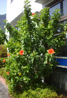 ハイビスカス が咲く。 伊豆は暖かい地域だ。 |