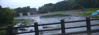 | ワイパーを動かしたり、止めたり。 たまにザーーーッっと そんな雨が降り続く。 年券購入のため 武茂川 ふれあい橋 大森囮屋へ 囮やに着く前に川を偵察。 水はチョロチョロだ!! 鮎の「キラッツ」は見える が・・・・ この雨で増水になれば 賑わうでしょっ。 |