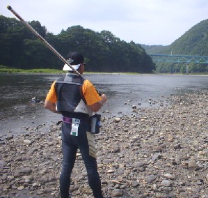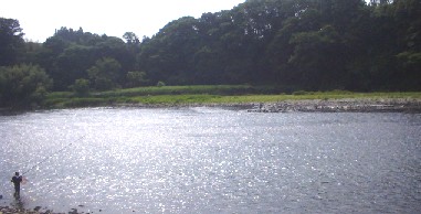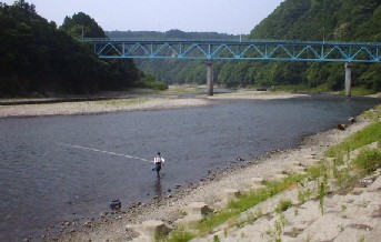 | 6月23日 前書き で ありながら 結論。 大瀬って難しい。 やっぱりここは人気ポイントだし。 那珂川の友釣り Tさん にしか釣れないんだ! 大瀬を知り尽くした人にしか釣れないんだ!! そう思いこむ事にした。 なぁ〜んていいながら,「盛期の大瀬釣りを教えて下さい!」と予約をしている。 その時はよろしくお願いします。 大瀬でバシバシ掛けると格好いいんだもん。いっつもギャラリー居るし〜〜!! そうだ、 僕は鮎釣りを始めた頃 毎週毎週 ここ大瀬に通った。 初めて 油ビレオレンジ天然鮎に出会えたのもここ大瀬。 初めて 囮にハナカン通そうとして ぴゅるんって逃げられちゃったのもここ大瀬。 初めて 数尾の入れ掛かりに巡り逢ったのもここ大瀬。 初めて 竿をブッカイたのもここ大瀬。 想い出のポイントなんだ〜。 僕の 那珂川シリーズ第2段 も今日で最終日をむかえる。 4日目だ。 7:30頃 大瀬の梁に到着。 すでに数名が竿を出している。車もポツポツと駐車場に集まってくる。 栃木の下流域といえども減水ッス。テトラがカッポリ顔を出している。 普通は被っているのに・・・・ 鮎師の立ち込み位置を見ても・・・ 膝? えっあそこで膝? おっ スネ って感じであ〜る。 気温は昨日までより冷えている。太陽は顔を見せていない。 |