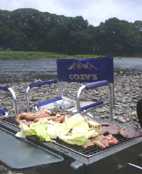 su-sanが下って来た。 「どぉ〜ですか〜」 「”ボ” だよ・・・ オイラこれから焼き肉パーティーするんだ・・・・・・」 「さっきさぁ〜〜 ”ごつっん”ってきてさぁ〜 竿立てようとすると バレるんだよぉ〜」 「それって サインボ〜 かなぁ〜?」 相当サインボが気になるみたい。 「サインボのケラレっちゅ〜のもありますよね〜」 ”ニコっ”としながら 車の方へ渡っていった。 もう お昼だ。 もぉ〜”ボ” だよ ”ボ” と言いながら 火をおこしはじめるsu-san |