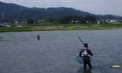 | ユウタさんから 九頭竜川のお話。 伝統の九頭竜返しのお話。etcをお聞きした。 ざっとした内容としては この川も変わってしまった。 川を知り尽くさないと流れに入ってはイケナイ!! 流れが浅くなってしまった。 (僕には十分以上に強烈で、怖いくらいの流れだが・・・・) こんなにドキドキする河川!!大切に 釣り人の手で守っていきましょう!! さあ始めますか〜 |