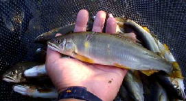 | でもオイラはコンスタントには獲れない。 バラシも多い。 Egaoさんは コンスタントに入れ掛かりもまじえて 獲る。 俺のダサさ、しょぼさ、ヘボさ を改めて感じる。 ドン玉氏はウグイを返す。 今回九頭竜遠征でのノルマ設定を各自10尾とした。 オイラ達成できず。 営業成績ダウン。 でも楽しさ、ワクワク感、ドキドキ感は設定をかなりオーバーした。 そして帰り際 もう1歩だよぉ〜って箇所で流された。 カツドンコンビ二人して。。。。。。。。。 ダサイ。 ユウタさん。タカさん。魚乱さん。 そして明日からも続きますEgaoさん 本日 どうもありがとうございました。 |