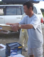 オッツ?この発砲スチロールに入った生酒は?? 昼休み?を利用して なべちゃんが賞品を提供!! ほんとは竿出したかったろぉーなぁ〜 |
