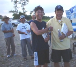 優勝 ライン社長 26cm おめでとうございます。 そして後ろの麦わら帽子姿の方は ”重爺” なんと89歳。 しかし元気も良いとこだ!! 当日も腰以上まで立ち込んでいた。 つい数年前の話だが、ロシアに熊撃ちに行ったらしい 「ロシアの女はいいなぁ〜」ってコメントだったらしい。 凄い。強烈。 |