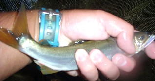 | 2003 ラスト鮎。 グラマー で・・・・ 香り高き・・・ 伊豆のチャラの鮎 (俺の指で 追い星 が隠れてしまった) |