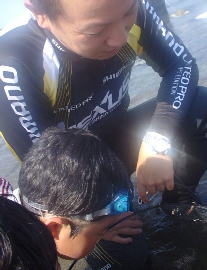 ここは 泳がせだろぉ〜 と カミに泳がせてると がま竿を持ったなべちゃんが 「なに泳がせてんの?」 と (笑) コココンと竿に感触が 確認すると ハリスが切れていた。 反応はある。 30分程度泳がせたところで 寝不足の息子が 「パパ〜」 ハナカンを外した。 ここで登場したのが 遠征王S氏 の孫 遠征王ミニS君 パワーがいい。 なかなか慣れない 僕とちょっと違う息子もニコニコしてきた。 まだ水も温まってないし 遊んでよぉ〜 遠征王S氏のワイルドな遊び方に 息子もワクワクしてきたみたいだ。 じいちゃんの居ない息子には最高のじいちゃんライフかもしれない。 桑島には じいちゃん が いつも いっぱいいて良い。 遠征王ミニS君にも徐々に馴染んできたみたいだ。 きっかけは ポケモン ここ最近のセブンイレブンはヤバイ。 なべちゃんは ラスカルのコップかなんかが欲しいみたいだ が あれ?パトラッシュだっけ? もし今月中になべちゃん と一緒に鮎釣りにお出かけの際は セブンイレブンの点数シールを差し上げてください。 10点で天然囮と交換みたいです???マジ??? タシロさんのゼリーも最高でした。 小女子も最高でしたが さっき便所にいったら 超ケツメド痛いッス。 でもあの青とおがらしとの炒め物 超クセになりますね。 安さんも登場した。 ロッジに泊めさせてもらうお話なんかもしちゃったりして・・・・ ついに遠征王ミニS君に心を開いた息子は 「ねぇねぇ〜釣りやってきてもいい?すぐ目の前でやるから〜」 「いいよぉ〜 遊んでいるから」 だって。 ひゃぁ〜うれしいぃ〜 ありがとうございます。 遠征王Sさん ミニS君。 それからは暴走特急の如く S君と遊ぶ 我が子 子供のすっげぇ〜楽しそうな声を聞きながら 鮎釣りが出来るなんて 最高だぜぇ〜 そして なべちゃん と一緒に竿をだす。 (やっと鮎釣りのことが書けるのか!) この前 ドン玉師匠にもらった 007で泳がせ開始すると 右岸側が猛烈 草っぱ。 クルクルクルっと苦労バー(クローバー)が絡んだ。 うっ 最悪。 ナイロンに張り替え! 得意の0.5通し ちび錘の止めでしょ。 張り替え終了 ベタ竿で引き 止め 引き 止め オバセ ゴゴツッツコゴゴっ ザラ瀬の頭できたッス 「ヒョイヒョォ〜い」掛け声なんかかけながら 後ろのギャラリーにアピールしちゃって・・・・・ 返しちゃおおおおお〜 ろくでもねぇ〜弾道で飛ばしてしまった (んん 一瞬 耳につく声をすぐ後ろに感じていた)(先輩か?) 竿が頂点を通過し着水に移行させようとする瞬間 ポッキリ 2番が 逝っちゃった〜 「ウワッツッツハハッツ」 うっ 穂先から繋がる糸に掛かり鮎がついてるのが 見えた。 吊るし込みOK でも 竿が・・・・・ タイミングバッチリ そんとき現れてたのが kaneyan先輩 見られてしまった。 見られちゃいけねぇ〜人に・・・・・・・ 久々に逢ったのに このタイミング 笑う。 ハードスペシャルに取り替え すぐさま 錘でチョコチョコ イジル と ぐッグっつっぐっつ 今度は楽に返せる またすぐに ググググググっ ノルマ 3尾をクリアーしたので 「サイズ ヨシ!」 実釣時間 1h 3尾掛けて 釣り保険の出番へ・・・・・・ まずは頼もうキャス林(リン) 「飯にしろぉ〜」 大声を ヤジさん お昼ご飯に 楽しい・楽しい・楽しい〜 ウワッツ〜 うな重 うに 最高のお食事が目の前に。 釣れなくたって これありゃ いいよねぇ〜 なべちゃん と・・・・ニコニコ いただきま〜す うまぁ〜い。 息子も大好きな うふぎ を口に うまぁ〜い。 ウニ が 口の中にトロ〜ンっと 広がる。 ワぁ〜をぉ〜 「ka2にもう一人年子で子供作らせるために持ってきたんだかんなぁ〜」 強烈な事を言ってる ヤジオーナー おおおお〜腹いっぱい。 「もうそんなに出来ないんだから今のうちいってきなよ」 と 遠征王Sじいちゃん から 「子供らは意気投合してるみたいだから」 kaneyan先輩がセッティングしてくれた パラソルテーブルに2人 チョコを口いっぱいにくっつけて 凄く楽しそうに |