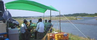 早朝 小魚ガサ を楽しんでいると ゾクゾクとチーム桑島の皆様が集まってきた でっかい人が手を振ってるなぁ〜 良く見えないんだよなぁ〜 近づこうとすると 誰だかわかった。 おとなしく座って ニコニコする なべちゃん もいた。 今日は桑島で一緒に竿を出すということで、 楽しみだ〜い。 3チラ氏は Y社長と 透き通る川へ出かけていった。 さぁ〜て そろそろおいらも竿をだしたいなぁ〜 息子の様子を伺いながら なべちゃん と 一緒に竿をだした。 囮屋のすぐ前 |