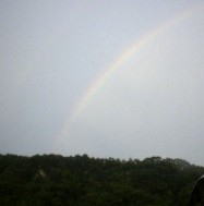 | 那珂川小口地区に虹が掛かった。 鮎中毒のちょっと濃いメンツにより ちょっとおかしい鮎中毒的な宴をしらせる虹だろう。 |