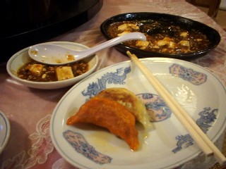 生ビールに スペシャルなマーボー豆腐 (美味い) お薦め料理の とんがらし餃子 & ノーマル餃子 (美味い) |