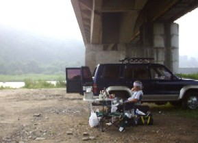 必ず現れる3チラ主将 は 休暇をとってくれた。 チョイとすると デッカイ車に乗ってやってきた。 今日合流の 小島タカさんもやってきた。 どこ行きましょうかぁ〜〜 んんん〜 赤岩っ! ということで 若鮎大橋 を目指した。 |