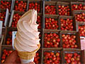 駅から山寺に向かうお土産屋で売られていた、さくらんぼソフト!丁度さくらんぼが美味しい時期で普段は、さくらんぼジュース(果汁5%入り)のみなのですが、今は果肉入り!!メチャクチャ美味しいソフトクリームです!!絶品でした。■お店■ おみやげ屋の「ふもとや 本店」(支店ではラフランスでした) さくらんぼソフト250円 |