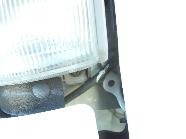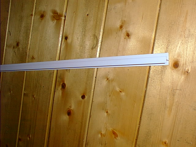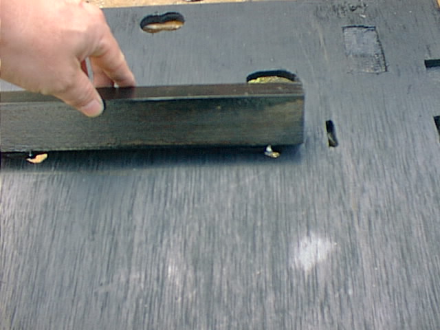 このV金物が壊れても良いように反射テープで 下から覗き込んだときに穴の位置と棒の進む方向を 判るようにしました。 |
