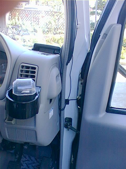 | 本体を助手席の後に取り付けました。 この位置だと手が届きます。 |