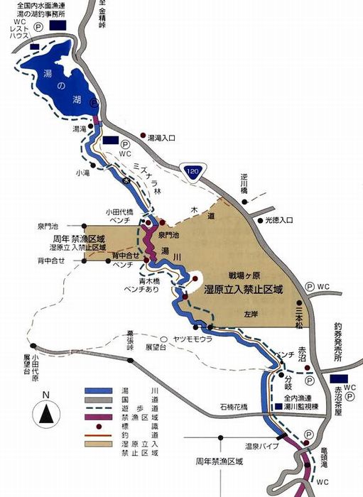 | 湯川マップは「内水面漁協日光支所」のパンフレットを参照としています |