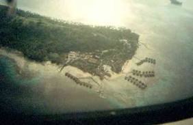 (2)のマティラ岬のとあるホテルのラウンジ。この夜は (2)水上コテージは、空から撮影すると、こんな感じ。