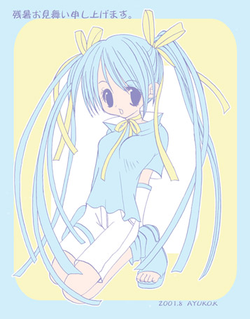 アユコ様のから早目の残暑見舞いを賜りました。。 淡い色塗りが涼しげでぐぅ〜でし! 超月、はにゃはにゃですの。。。 アユコ様。ありがとうございました〜〜!