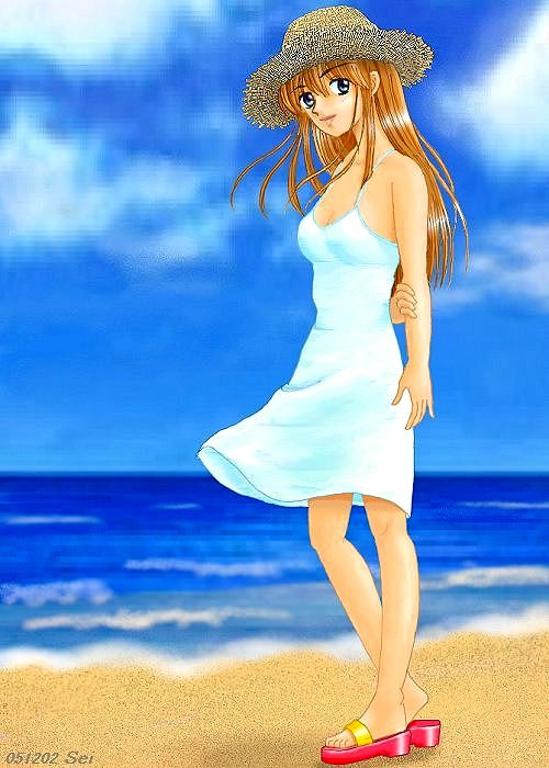 一足早く、夏の雰囲気で。。 やっぱり潮風には長い髪だ!(断定) 「四季出会い、夏」 ある暑い夏の日に 海辺の町で出会った娘は 日焼け顔に白い歯の 麦藁帽子の女の娘。 微笑んでくれた君の瞳は とても美しく輝いていた。。