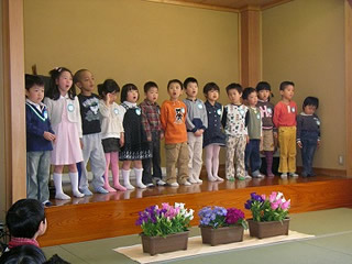 012才の新入園児14名、途中入園児2名の子ども達と、そのご家族が参加され、保育園を代表して、なりたてほやほやのぞう組、ひつじ組の子ども達により、園歌「かぜのこの歌」そして歓迎の歌「夢色ファンファーレ」が披露されました。さすが進級し自信に満ち溢れた子ども達の笑顔でした。 赤ちゃん達も目をぱちくりしたり神妙な顔・・・様々な表情でした。これからみ〜んな たかさご保育園の仲間ですね!よろしくお願いします!