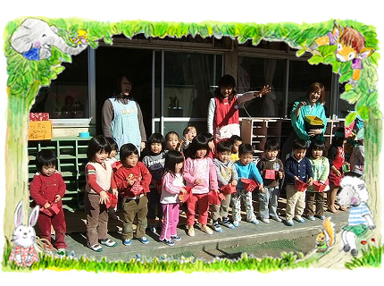 今年は平年以上に雪の日が多く、寒い日が続きます。保育園では節分に豆まきを行ないました。お腹の中にいる鬼を描き、大鬼に貼り付け、その鬼めがけて豆をまきました。と、そのうち本物の?鬼が出現!年長組さんのお陰でやっつけることが出来ました。今年も健康な一年でありますように!と祈りました。
